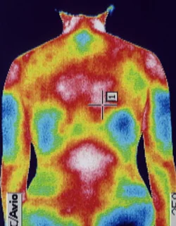 ※サーモ画像では、炎症のある部分が白く映ります。頸、両肩、背部、腰に炎症があるのが確認できます。