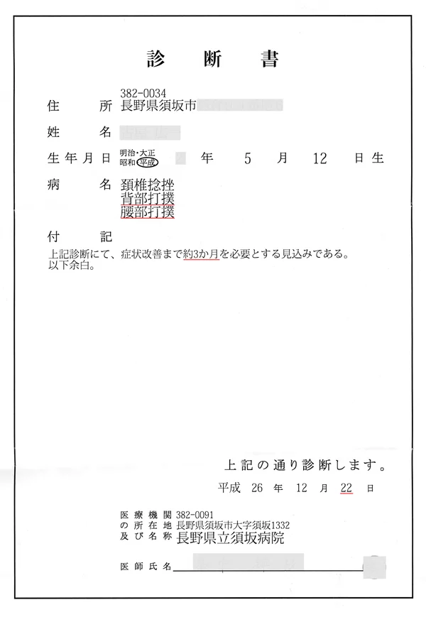 むち打ちには3つの診断書があります。