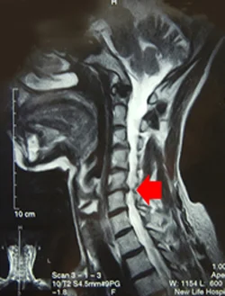 交差点を走行中、信号無視の車にぶつけられました。当初、全身に痛みがありましたが、痛みに改善がないので脳神経外科で検査、脳脊髄液減少症の診断となりました。